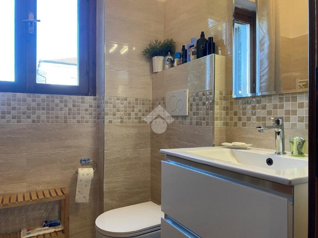 VILLASTANZA In zona tranquilla e riservata situata in una via chiusa proponiamo porzione di villa bifamiliare realizzata agli inizi degli anni '90 disposta su tre livelli abitativi con area esterna (170 mq); Al piano terra (60mq) troviamo cucina abitabile, soggiorno e bagno di servizio ristrutturato completamente circa 2 anni fa; Attraverso una comoda scala in muratura si accede al piano primo (54 mq) dove troviamo tre camere da letto di diversa metratura, una delle quali dotata di terrazzino e bagno patronale completamente ristrutturato anch'esso 2 anni fa; Al piano seminterrato (59 mq) si può accedere sia attraverso la medesima scala interna che tramite una scala esterna posizionata sul retro dell'abitazione; piano nel quale trova spazio una comoda taverna ed un locale lavanderia/caldaia e mini palestra. La casa è dotata di caldaia a condensazione recentemente installata, collegata all'impianto fotovoltaico presente sul tetto della proprietà da 4,5 Kw, oltre ad una batteria d'accumulo da 10 A (ampere) posizionata nel box. A completare la soluzione impianto di aria condizionata installato in tutti e tre i livelli della villa.